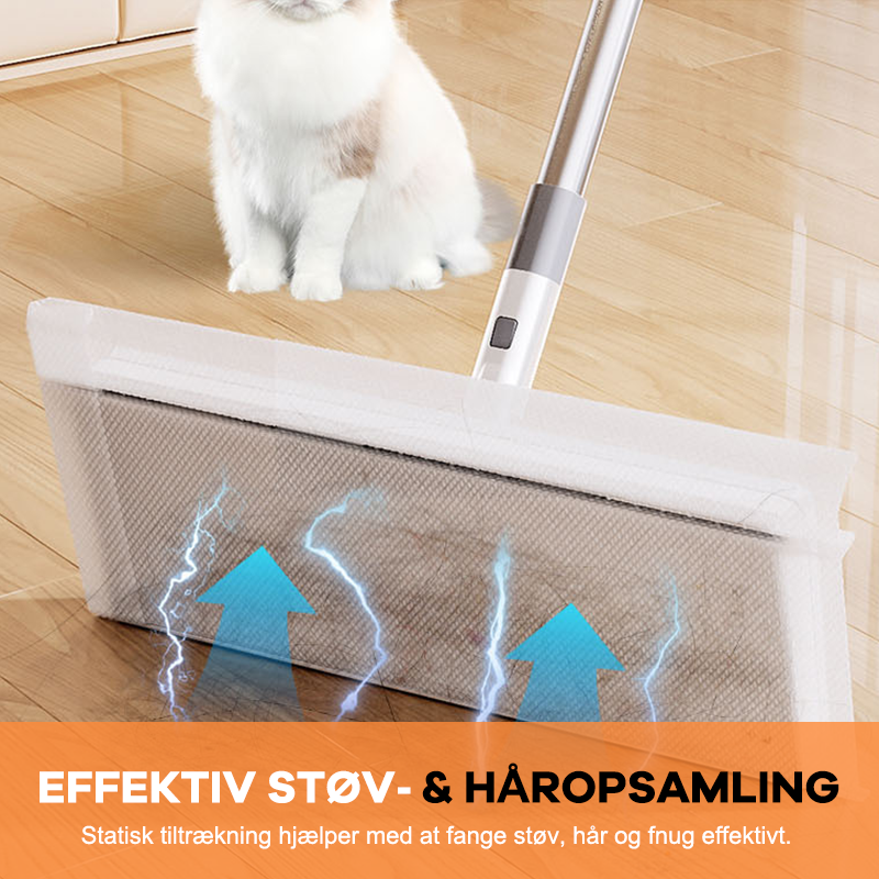 Statisk tiltrækning hjælper med at fange støv, hår og fnug effektivt.